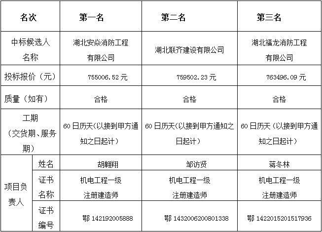 松滋金投桐乐湾儿童商业广场-万达影院消防系统改造工程于2022年11月28日至11月29日发布投标邀请函,于2022年12月5日09时00分在湖北松滋bw必威西汉姆联官方网站投资控股集团有限公司二楼开标室开标,并于2022年12月5日完成评标工作。根据评标委员会提交的评标报告,松滋金投鑫诚商业管理有限公司已经确认评标结果,现进行评标结果公示。