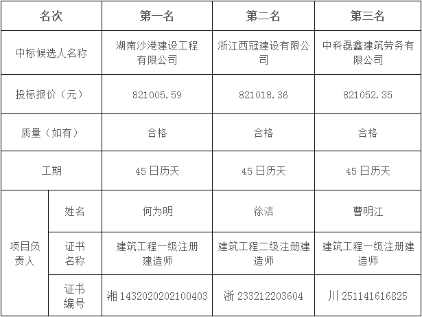 松江花园(二期)8#楼商业室内装修改造工程于2022年11月30日至12月01日发布投标邀请函,于2022年12月07日15时00分在湖北松滋bw必威西汉姆联官方网站投资控股集团有限公司二楼开标室开标,并于2022年12月07日完成评标工作。根据评标委员会提交的评标报告,湖北松滋金投置业有限公司已经确认评标结果,现进行评标结果公示。