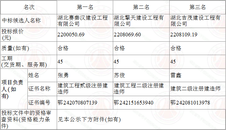 评标工作。根据评标委员会提交的评标报告,湖北松滋金投置业有限公司已经确认评标结 果,现进行评标结果公示。