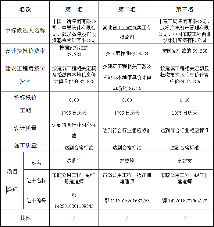 本项目于2023年05月28日在湖北省电子招投标交易平台发布招标公告,2023年07月03日在松滋市开标室(1)开标,并于2023年07月03日完成评标工作。根据评标委员会提交的报告,松滋bw必威西汉姆联官方网站工业投资开发有限公司已经确认评标结果,现进行评标结果公示。