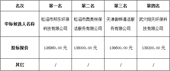 金投物业松江花园小区保洁服务采购项目中标候选人公示