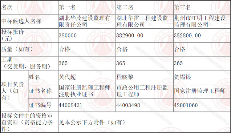 松滋市智能针纺服装产业园双裕路(西望路-白云边大道)道路工程监理招标评标结果公示